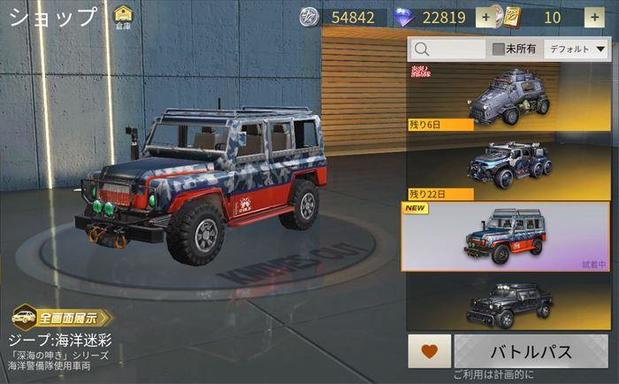 | ジープ:海洋迷彩入手方法 | バトルパスエリートレベル60で獲得 |