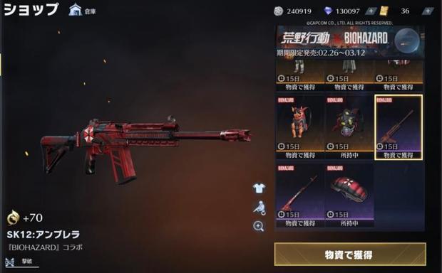 | SVD:アンブレラ入手方法 | BIOHAZARDコラボ第2弾ガチャから排出(1%) 交換ショップで交換(12枚) |