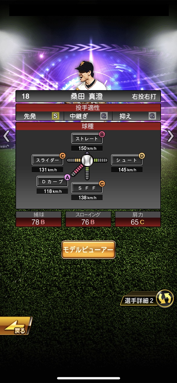 桑田選手は2018OB以来となり、前回と大きなステータスの変更はなく登場となりました。